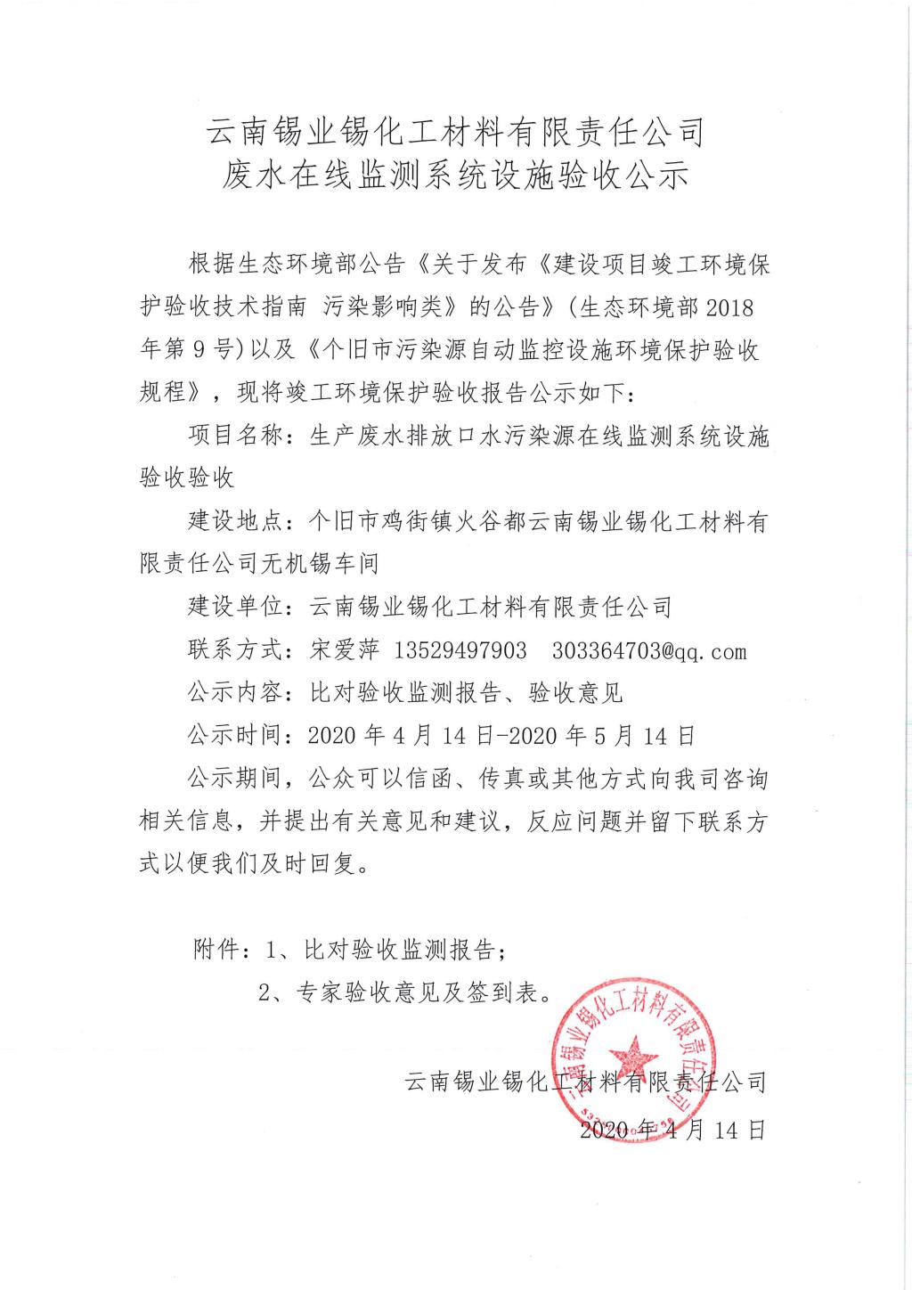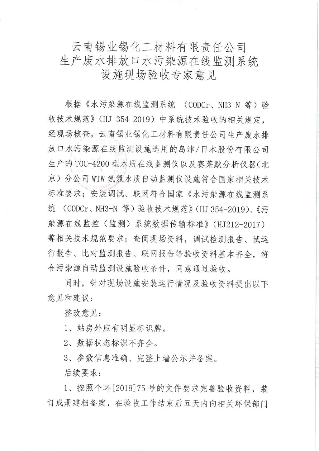J9国际站登录锡化工材料有限责任公司废水在线监测系统设施验收公示