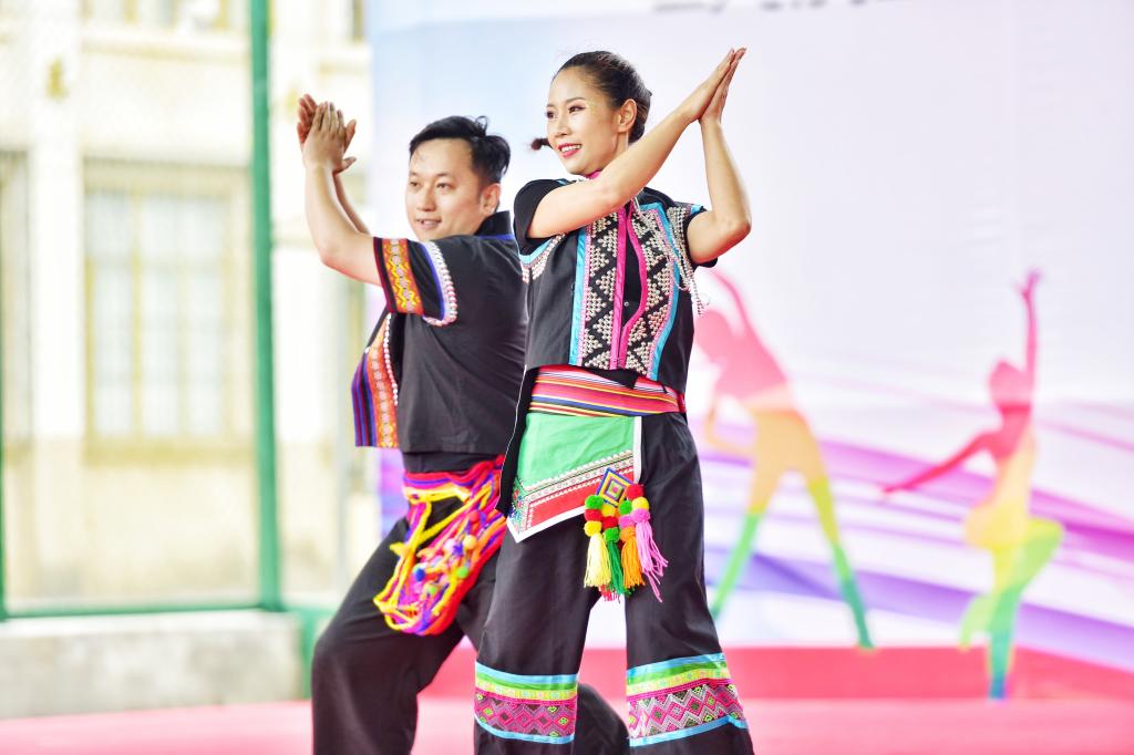 卡房分公司规定动作《飞跃的心》和自编动作《彝山乐作》、铜业分公司规定动作《祝福你我亲爱的祖国》和自编动作《彝族健身操》荣获二等奖。