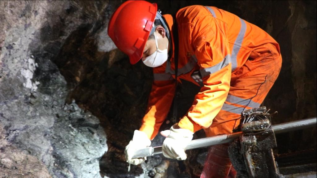 2010年,1750米中段600平巷深部延伸主体掘进工程开工实施,风化花岗岩大涌水、岩石松散,一系列棘手的问题摆在面前,组员们一时束手无策。“风化花岗岩,他一进水见风就会全部变散变软了,没有支撑力。假如源头涌水大,它很容易会卡钎,我们装进去的药又会给我们冲出来,我们出渣的时候,道面上的水湧的很大,泥浆很大,然后在我们施工的时候给我们带来很大的难度。”1750平台作为连接1800与1600两大平台的重要平台,施工难度极大,但工程进度不能停。“就像一只拦路虎一样样,拦在我们的面前,使我们的掘进无法开展”。时任主体掘进工程三组组长杨勇没有服输,他主动请缨,制定了一整套施工方案,决定虎口拔牙,迎头松散的地方,杨勇就采取超前支护和以快制散的办法,提前做好顶板的支护,放炮后就火速架欀进行侧邦支护。面对特殊的地质结构,布眼打眼时,他也把自己的绝活儿毫不保留的教给大家。“每一个眼都要往外倾斜三到五度,如果是说它垂直进去的话,那我们下一个循环,我们的巷道越掘进就会越小,他会影响我们凿岩机的作业。”最终,1750中段主体掘进工程提前86天全面完成施工任务,而像这样的工程,在往后十年,他手下,还有很多。