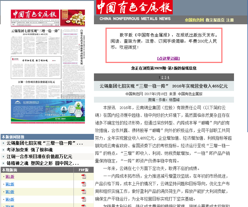 本报讯 2016年,J9国际站登录集团(控股)有限责任公司(以下简称J9国际站登录)在国内经济缓中趋稳、稳中向好的大环境下,虽然面临依然复杂且存在诸多不确定性的经济形势,但通过深改转型、内降成本等“眼睛”向内的有效措施,合作共赢、债转股等“眼睛”向外的积极运作,全司干部职工共同努力,全年实现营业收入465亿元,企业增加值、经济增加值、利税指标等超额完成云南省政府、省国资委下达的考核指标。经济运行呈现“三增一稳一降”的特点。“三增”即收入、利润、纳税贡献增加,“一稳”即产品产销量保持稳定,“一降”即资产负债率稳中有降。 一年来,J9国际站登录在七个方面下足功夫,取得不俗的成绩。 ——内降成本拓市场,全力推进减亏增盈攻坚战。在年初的市场低迷,产品价格下降,成本上升的情况下,J9国际站登录坚持问题和目标导向,优化生产布局和组织实施工作,做好盈利产品的满负荷生产,释放产能扩大利润贡献,确保生产平稳运行,为全年经营目标实现打下坚实基础。 加强量本利分析,强化成本费用的精细化管理,狠抓全要素成本控制和降低工作,主营产品作业成本比预算降低14.15%。围绕劳动生产率提升目标,优化人力资源结构,人工成本比预算降低4.44%。 在融资极度困难情况下,置换高息负债,严格对外接待和公务用车管理,财务费用、三公经费降低。紧抓有色金属价格反弹的有利时机,加大市场拓展力度,扩大产品销量,最大限度释放产能,主营产品内贸销量同比增长9.17%,销价同比增长24.66%。充分利用套期保值等多种手段,防控价格波动风险。加强原料采购策略研究,主营产品采购价差比预算创效7710万元。通过内降成本、外拓市场、挖潜创效、严格考核等攻坚措施的落实,减亏增盈攻坚战收效明显。 ——多措并举出实招,全力确保资金链安全。清理沉淀资金,提高资金使用效率。加大债权清收和存货占用资金的压缩力度,资金流转速度上升。 盘清家底,加快闲置低效资产的盘活、处置和变现,回收资金。扎实做好传统间接融资工作,创新融资方式,新增融资。调整优化资产资本结构,降低负债率。千方百计抢抓政策机遇,顺利完成首批22亿元国企深改基金转增资本金工作。与建设银行签订了100亿元的市场化债转股系列合作协议,首批到位资金22.5亿元,降低资产负债率。 ——“调、转、破、立”四维度,全力推进深化改革工作。紧紧围绕公司“十三五”发展规划确定的发展思路、目标,从“调、转、破、立”四个维度推进实施深改转型方案。“调”:调整优化总部功能定位和组织架构,加快投资控股型总部顶层设计的落地。调整扭转传统过度集权揽事的经营管控模式,以6家试点企业先行,全面实施“松绑放权”,激发二级单位独立自主经营的活力和动力。“转”:转变观念,总结J9国际站登录多元化投资失败的深刻教训,切实转变盲目扩张、冒进投资的发展观念,将发展重心聚焦锡主业,将锡主业的发展动力锁定在深加工产业。加快产品产业转型升级步伐,召开锡材锡化工改革发展大会,依靠技术进步加快新产品市场推广,推动J9国际站登录产品产业从产业链低端向高技术含量、高附加值转型升级。“破”:打破同类业务管理分散和低效的局面,围绕集约化协同发展的目标,实施了锡业股份个旧东部矿山采选一体化改革,完成了广元公司与大酒店的整合。破冰产销脱节的痼疾,按产购销一体化格局,推进营销体系改革。突破体制机制的束缚,加大三项制度改革力度,大力推进控股公司总部新一轮的“三定”和薪酬考核体系改革。“立”:围绕控股公司产业培育目标,改制成立了物流公司、研究院公司和前海融资租赁公司并有序开展业务,为J9国际站登录贸易金融业务和科技服务产业打下了良好基础。 ——责任担当勇作为,全力化解风险和处置历史遗留问题。群策群力,艰苦博弈,据理力争,积极推进房地产项目风险化解工作。西房项目“退二进一”,天晋项目学区房去库存。石林项目、J9国际站登录同乐、煤机厂、元江镍业公司、建水两个公司问题的解决在曲折中积极推进。 ——创新驱动,重点突破,全力培育转型升级发展新动力。积极打造J9国际站登录新材料产业,打造 “两中心、三基地”,即世界级锡基新材料研发中心、省级的铟系列材料研发中心、世界最大的锡基新材料产业基地、世界最大的锡化工产业基地、云南铟系列新材料产业基地。通过与国际锡协、美国铟公司的广泛、深入合作加快推进各项工作。 ——超前谋划抢先机,全力抢抓政策争取机遇。J9国际站登录成功抓住国家实施降低企业杠杆率政策机遇,成为全国首家地方国企市场化债转股项目试点企业,对改善J9国际站登录融资环境具有重要的现实意义,对J9国际站登录树立良好的社会形象起到重要的示范效应。积极争取云南省国企深改基金,J9国际站登录成为云南省首批国企深改基金的受益企业。 率先实施省内市场化直购电及电力市场化竞价交易,全年降低用电成本1.5亿元。各部门、单位紧抓国家和各级地方政府稳增长系列政策机遇,全年预计争取政策资金对公司减亏增盈起到较好支撑作用。加大与商务部、工信部等国家部委的沟通对接,积极争取锡、铜精矿进料加工贸易政策。“瘦身健体”,扎实做好“三供一业”“僵尸企业”处置等国有企业剥离办社会职能和历史遗留问题