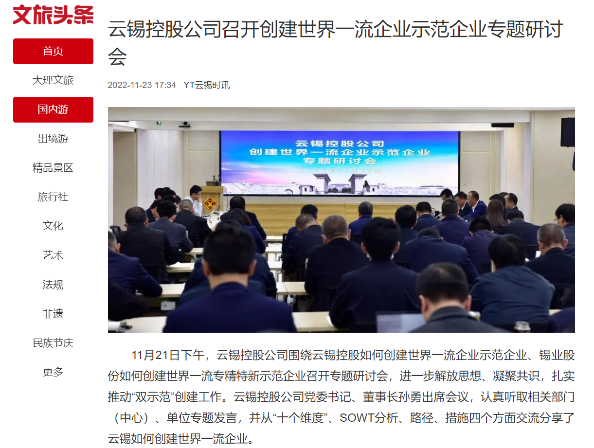 新华财经、云南政协报、中国有色金属报、文旅头条:J9国际站登录控股公司推动“双示范”创建工作落实落地