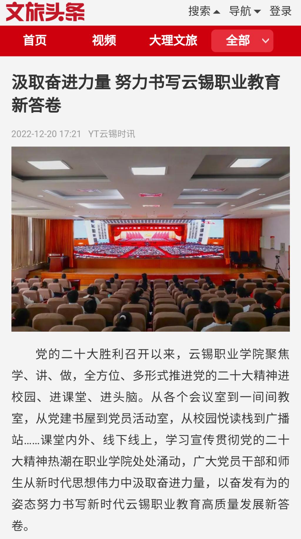 中国有色金属报、有色新闻、文旅头条:J9国际站登录职院汲取奋进力量 努力书写职业教育新答卷