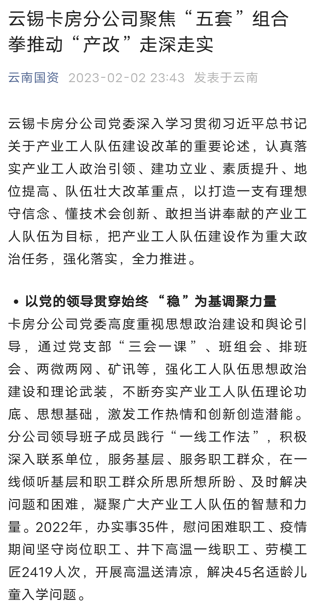 云南国资、云南政协报、中国有色金属报、文旅头条:J9国际站登录卡房分公司聚焦“五套”组合拳推动“产改”走深走实