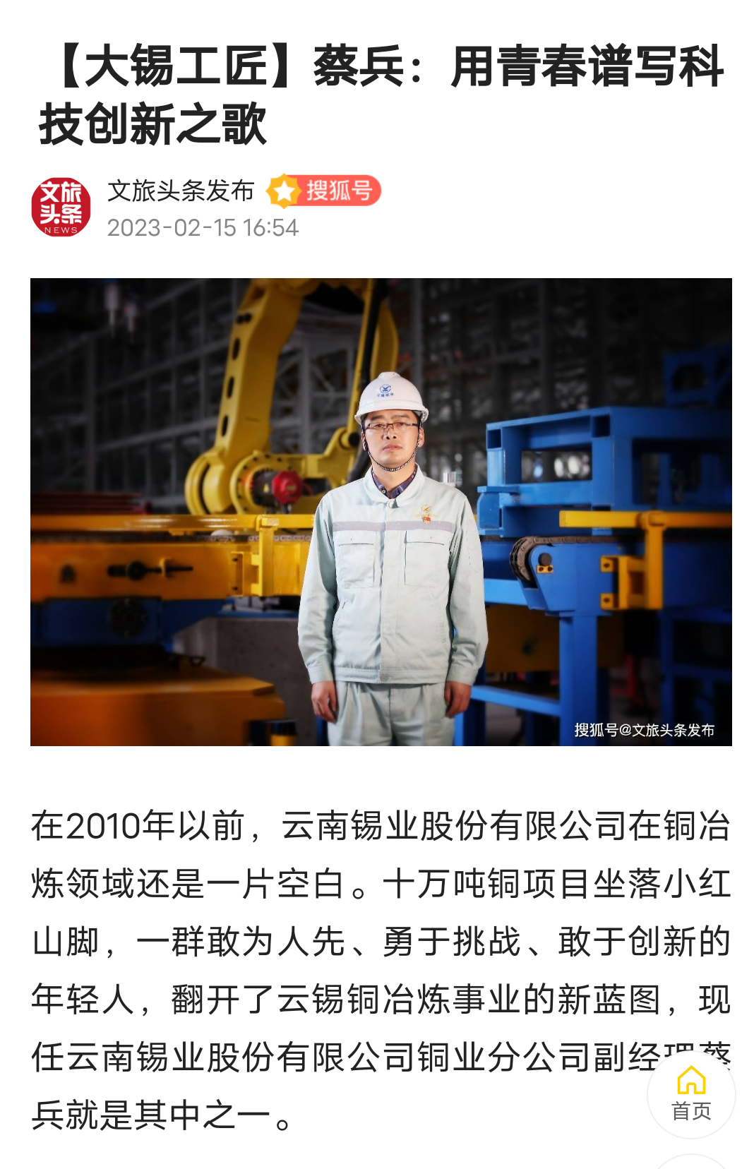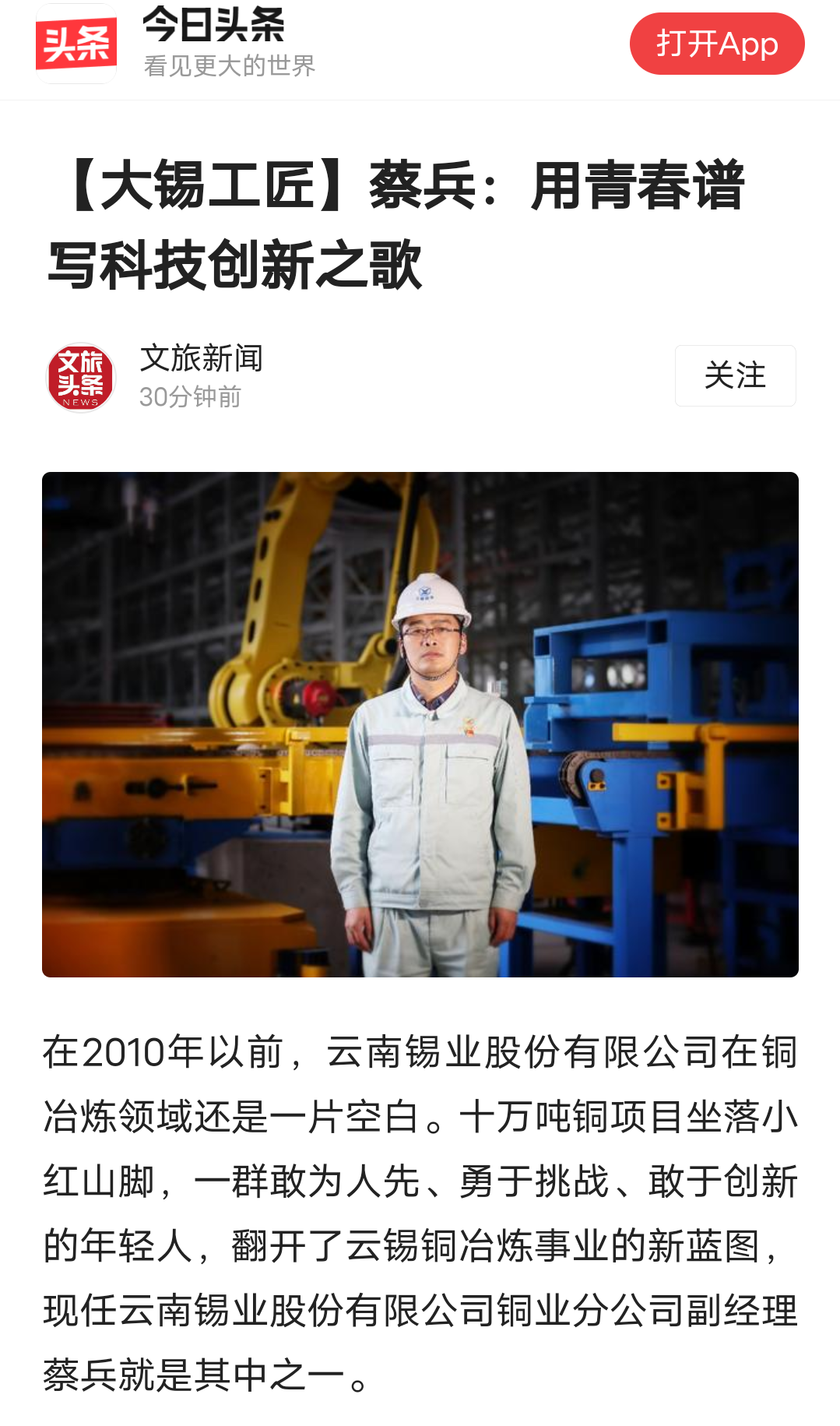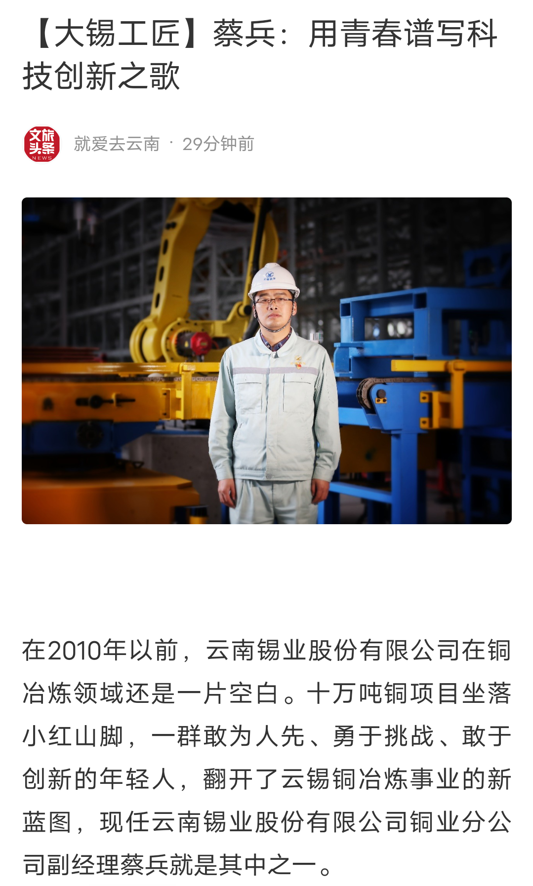 百度、网易、今日头条、搜狐、一点资讯、文旅头条:【大锡工匠】蔡兵:用青春谱写科技创新之歌