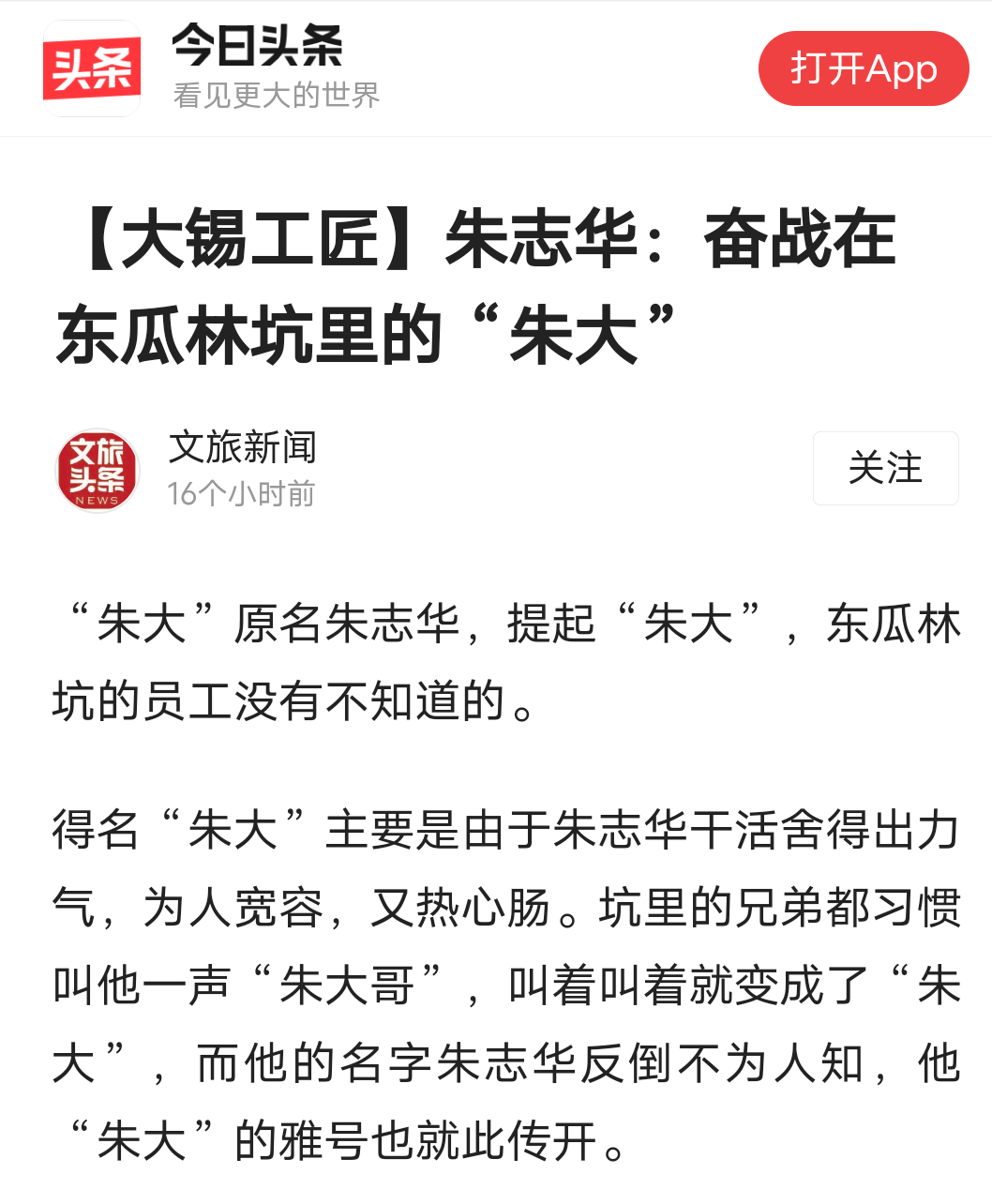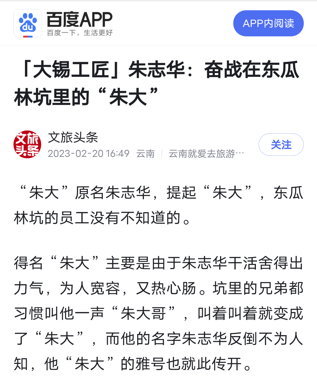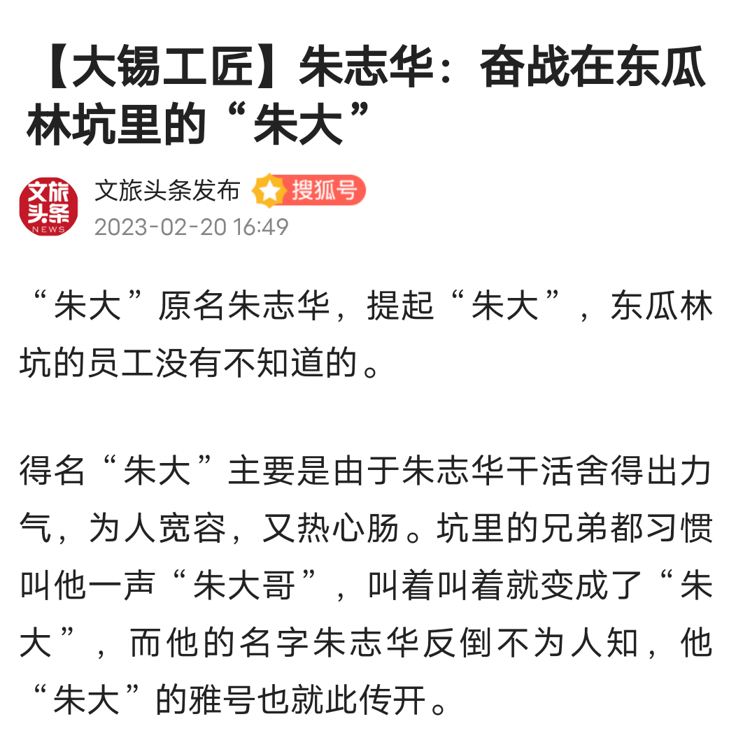 今日头条、百度、搜狐、文旅头条:【大锡工匠】朱志华:奋战在东瓜林坑里的“朱大”