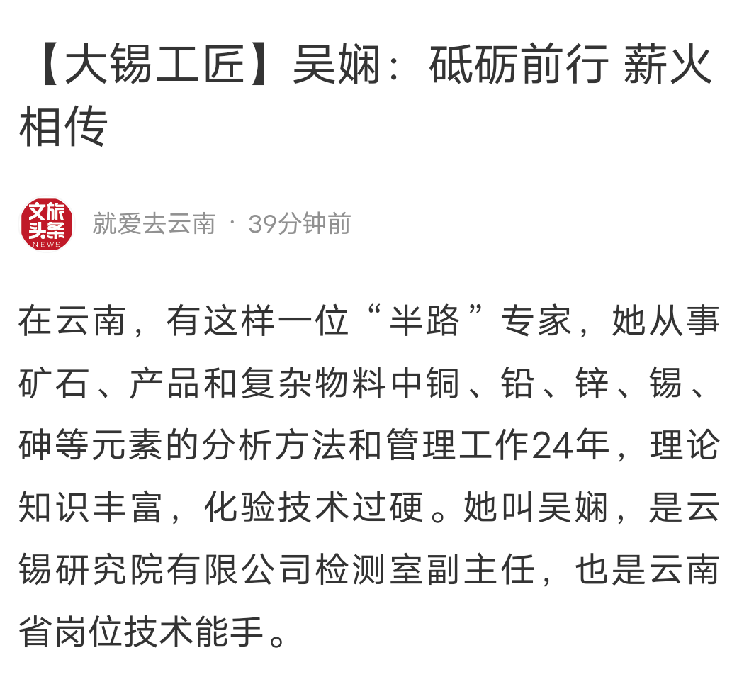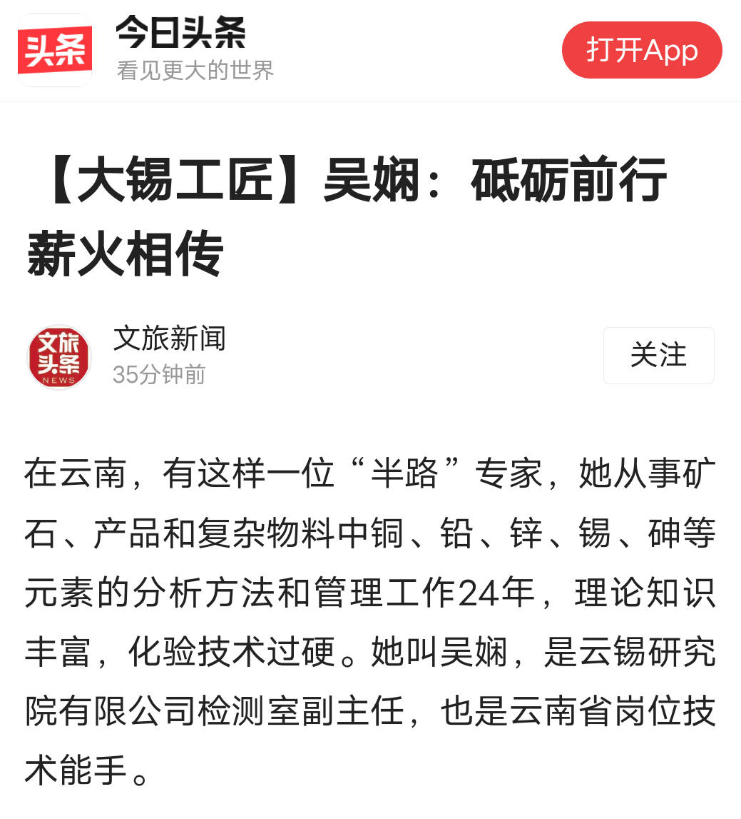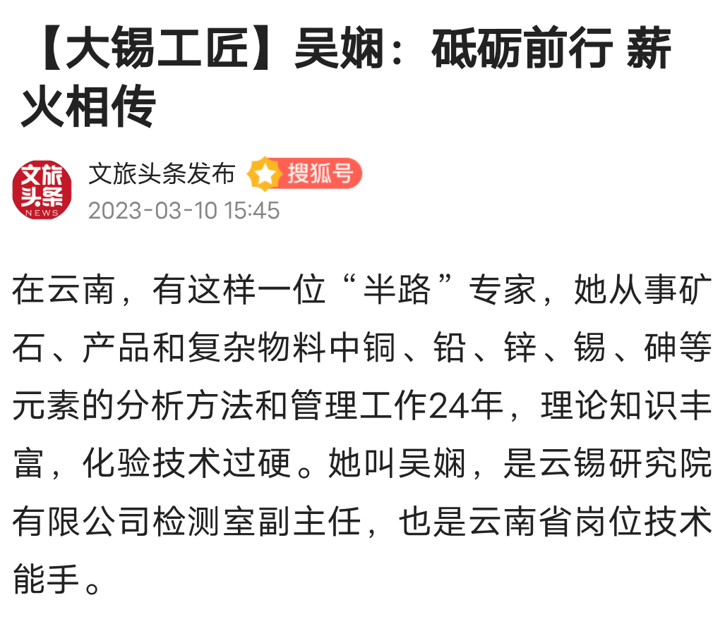 今日头条、搜狐、大鱼号、一点资讯、百家号、新浪看点:【大锡工匠】吴娴:砥砺前行 薪火相传
