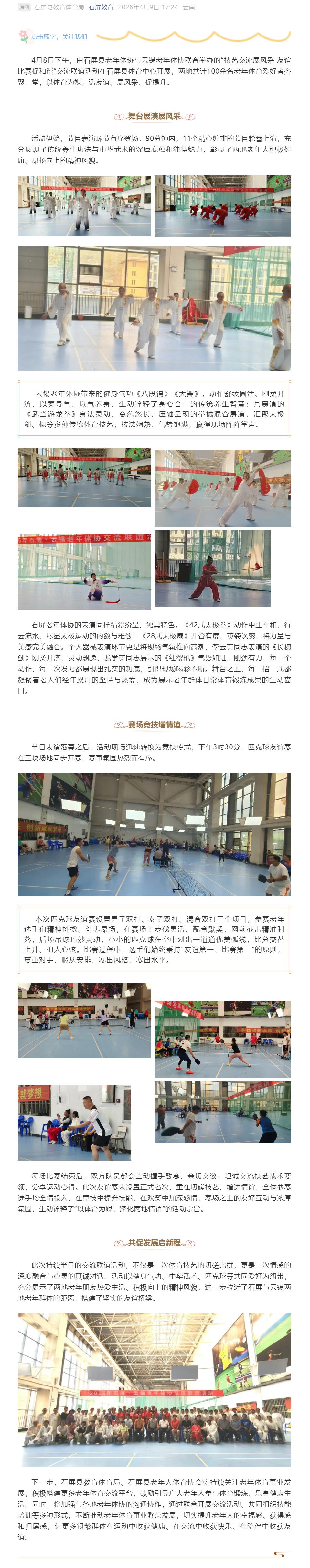 石屏教育:以赛会友 以艺传情——石屏·J9国际站登录老年体协交流活动展银龄风采