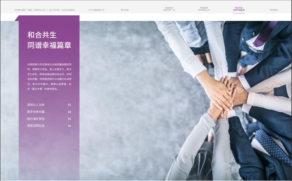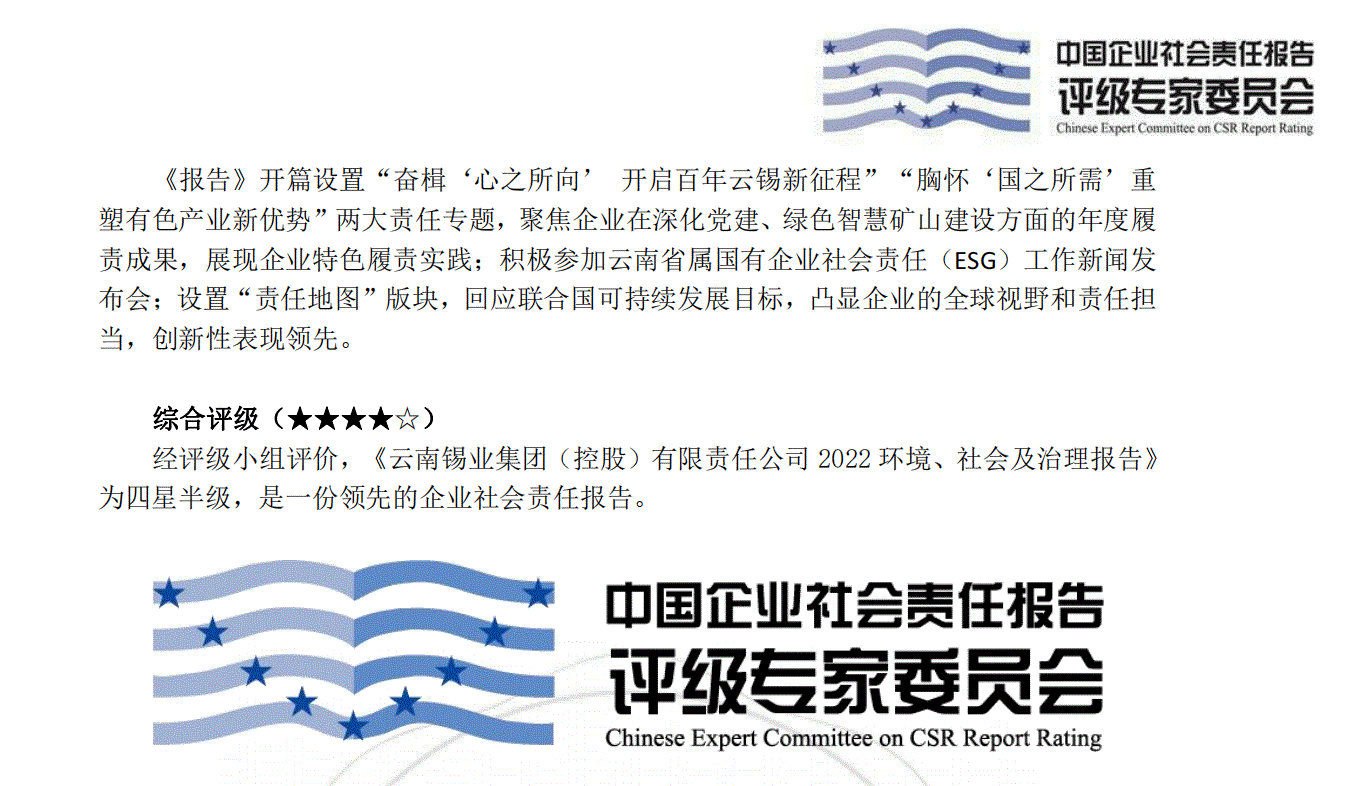 报告通过“砥砺奋进 创建世界一流”“厚植绿意 共护锦绣山河”“和合共生 同谱幸福篇章”三大部分系统总结J9国际站登录在规范企业治理、践行安全绿色发展、强化创新驱动和共建共享,实现企业和社会、环境全面协调可持续发展的经验做法,系统展现公司对国家、环境、客户、伙伴、员工、社会等的履责理念、实践与成效,充分回应了利益相关方的责任期望与诉求,彰显了“锡业骄子”“行业龙头”矢志“恪守产业报国”“勇担国之大者”的鲜明特点。